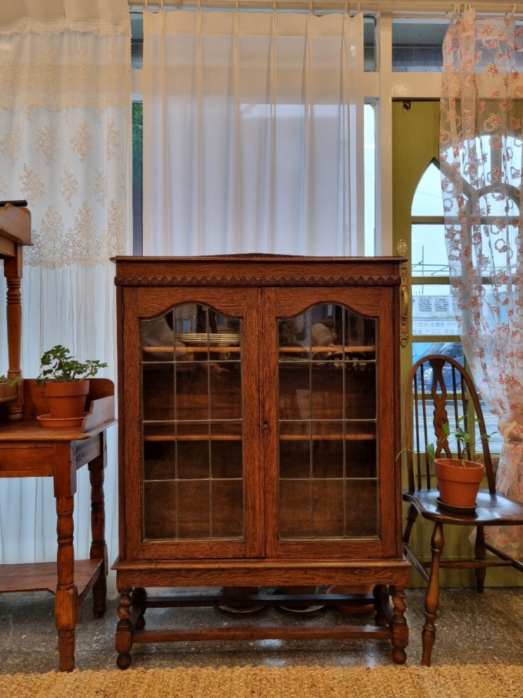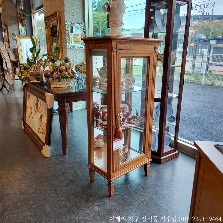 앤틱 원목유리장식장 23cm 접시 여유 있게 담겨요.