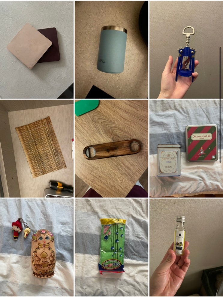 01 티코스터>>사용하기 불편해 폐기 02 텀블러>>기부 03와인오프너>>폐기 04-05 김밥발,...