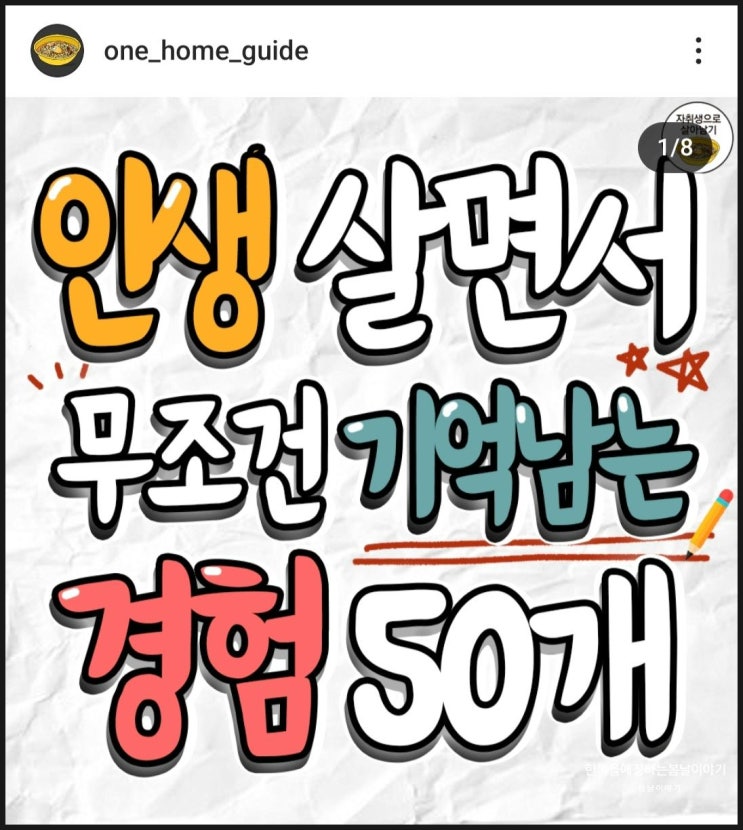 인생 살면서 무조건 기억 남는 경험 50개 인생 살면서 무조건 기억 남는 경험 50개라고 합니다 1. 직접 만...