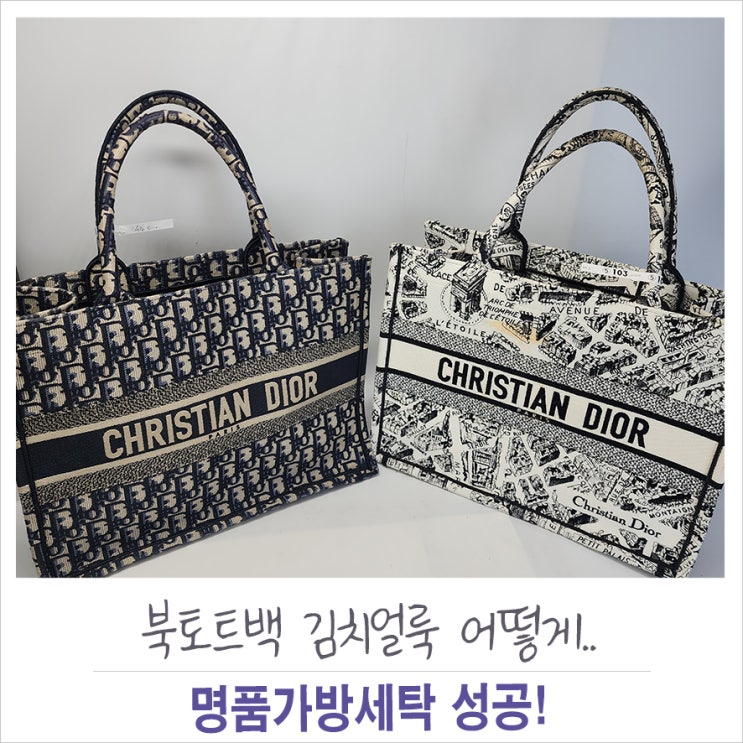 디올 북토트백 명품가방세탁 김치얼룩 제거 성공!내부까지 스며든 색소얼룩 고난이도 세탁