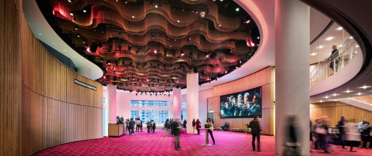 [커튼메쉬 실내 천정 해외사례] Jazz at Lincoln Center 물결무늬 금속인테리어 천장메쉬망