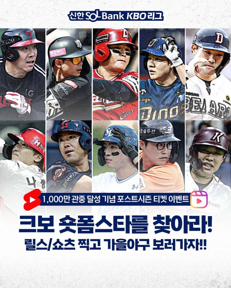 KBO 최초 1000만 관중 달성 기념 '크보 숏폼스타를 찾아라!' 이벤트 진행! 릴스와 쇼츠 찍고 가을야구 보러가자!