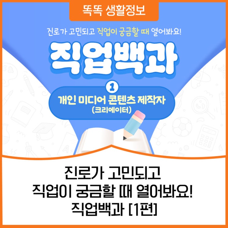 진로가 고민되고 직업이 궁금할 때 열어봐요! ? 직업백과 1편 : 개인 미디어 콘텐츠 제작자(크리에이터)...