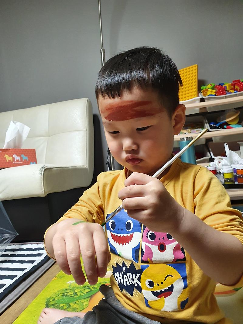 [육아] 쉴드 페이스페인팅(Shield Face) / 아이랑 물감놀이 / 코로나 집에서 할 거리