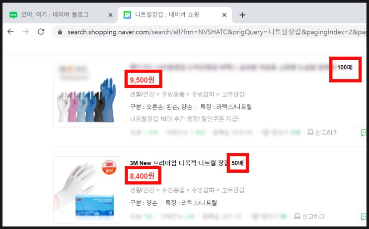 엄마의 구매요청을 받고, 열심히 '니트릴 장갑'을 검색했다. 만원에 백 장을 살 수 있는 제품들...