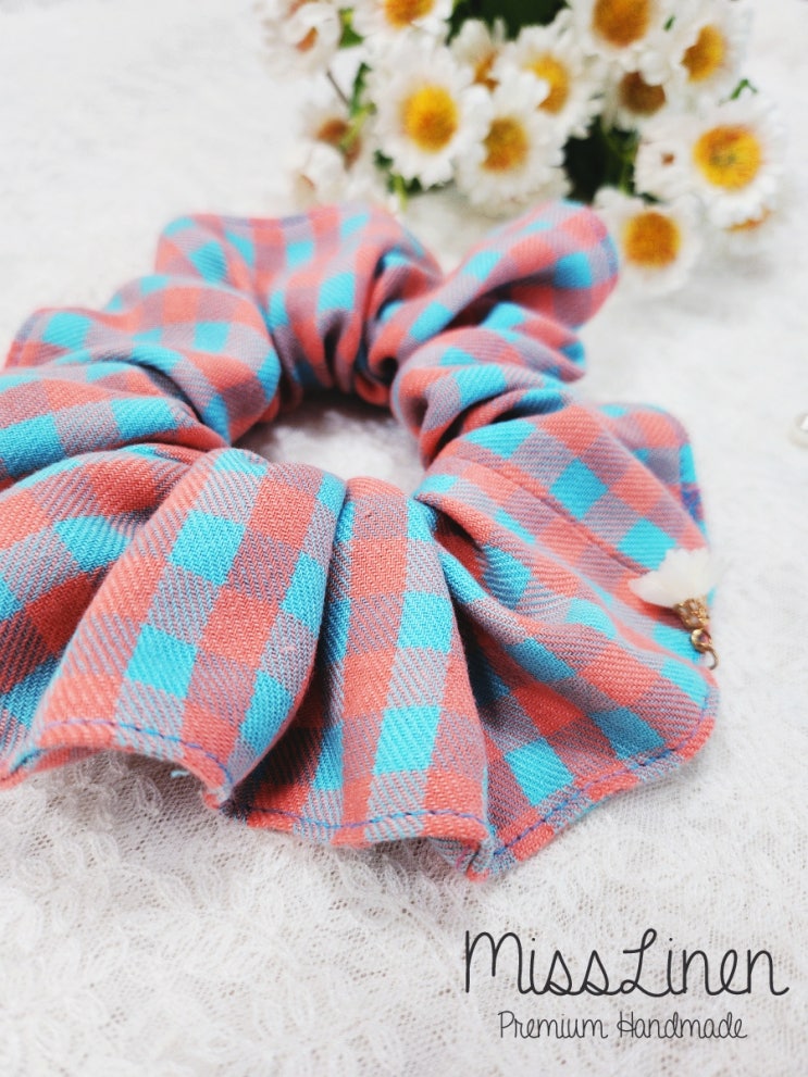 두근두근 미싱 배우기 첫날~ 어떤 작품을 만드셨는지 함께 볼까요 첫날 함께 만들어본 스크런치 예요~ 체크...