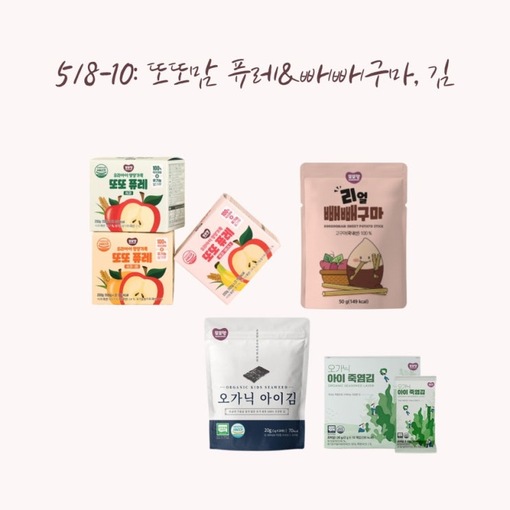 (5/8-10) 또또맘 간식 골라담기 / 또또퓨레 / 또또맘 빼빼구마 / 또또맘 유기농 김 / 오가닉 아이김 / 죽염김