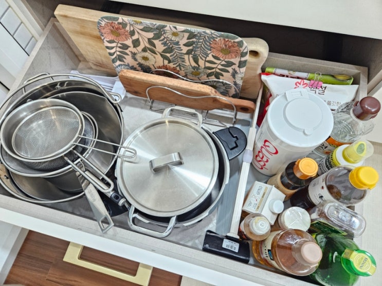 주방 서랍 정리 :: 큰 서랍에 스텐 냄비 수납하기 글. 사진 싱유 #주방서랍정리 #주방정리 #싱크대서랍정리...
