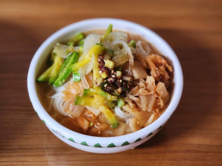 단골 막창집에서 마지막에 늘 먹었던 김치말이 국수가 먹고 싶다는 중학생을 위해 만들어본 김치말이국수. ...