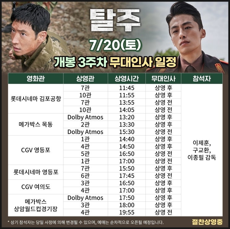 탈주 무대인사 일정 3주차