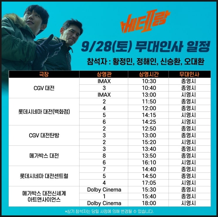 베테랑2 무대인사 일정 3주차 베테랑2 무대인사 3주차도 확정 되었습니다. 개봉 3주차 무대인사는 대전 지...