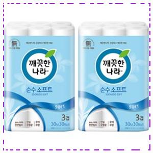 깨끗한나라 3겹 순수 소프트 화장지, 30m, 30롤, 2개 ? 하단에 사진을 클릭하면 이동합니다 ? ✅ 부...