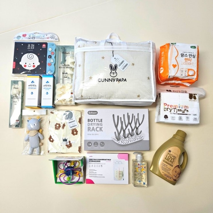 원주 베이비파크 출산준비 (초점책 이불 젖병건조대 인형 아기세제 내복 치발링 모유팩 안심팬티)