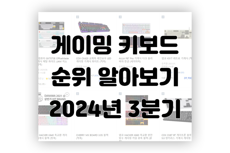 게이밍 키보드 순위 알아보기 2024년 3분기 게이밍 키보드 순위와 관련해서 포스팅을 올린지 엄청 오래되었...