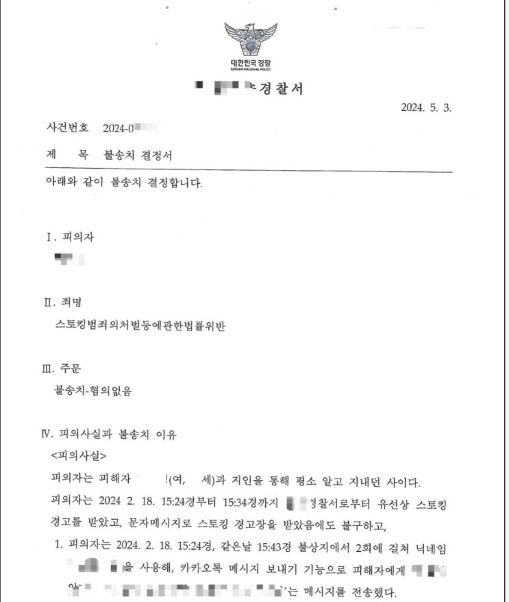 스토킹 처벌법 위반 변호사 개정 후 후기