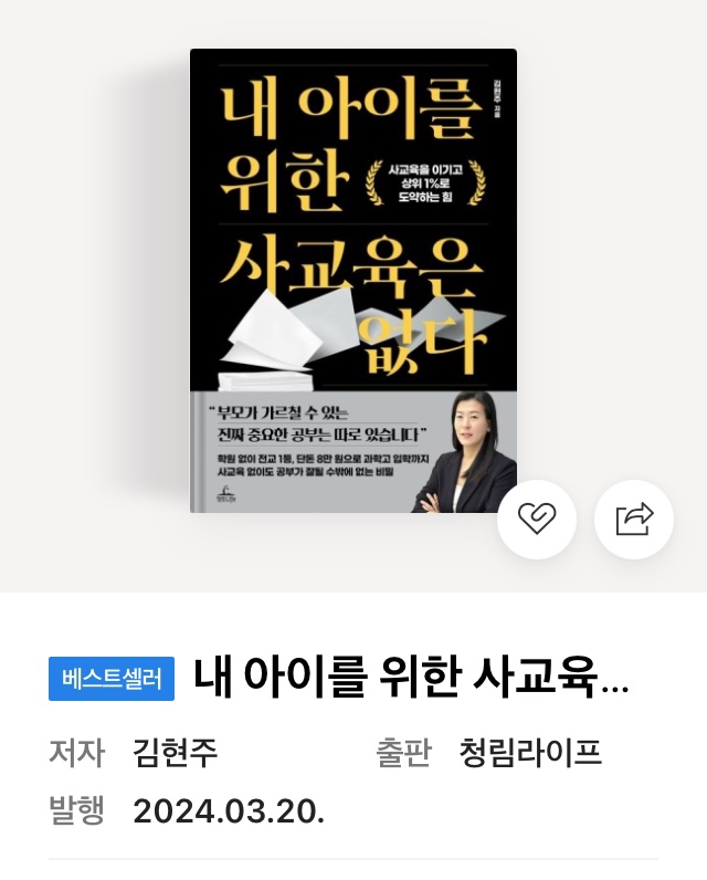 내아이를 위한 사교육은 없다. 내가 즐겨보는 교육대기자tv에 김현주님 책소개가 나와 궁금했는데 이웃님 ...