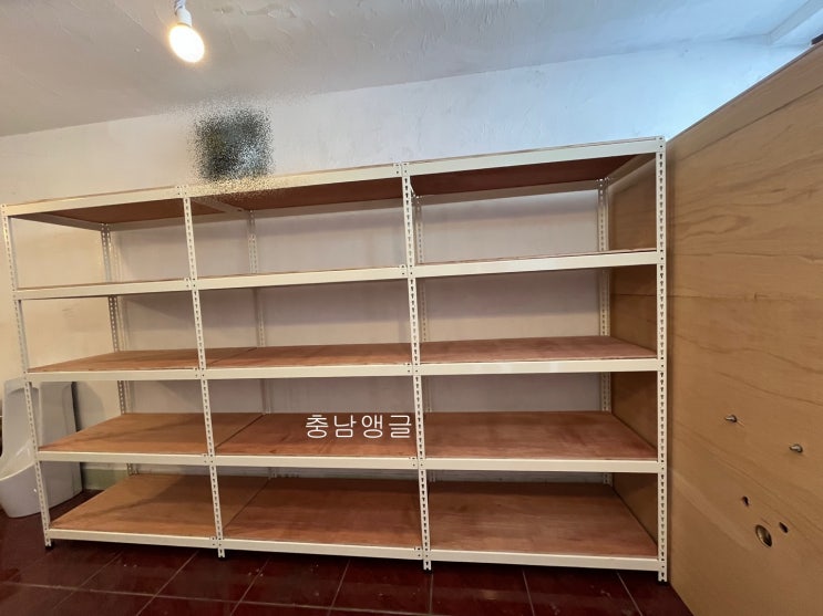 안녕하세요 충남앵글입니다. 이번에 제작한 선반은 무볼트앵글로 제작한 철제선반입니다. 필요하신 선반의 ...