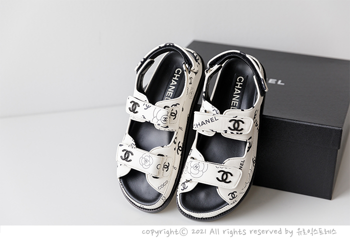 [CHANEL] 샤넬 CC 로고 벨크로 샌들 화이트 G35927 유럽 현지 정품 구매대행