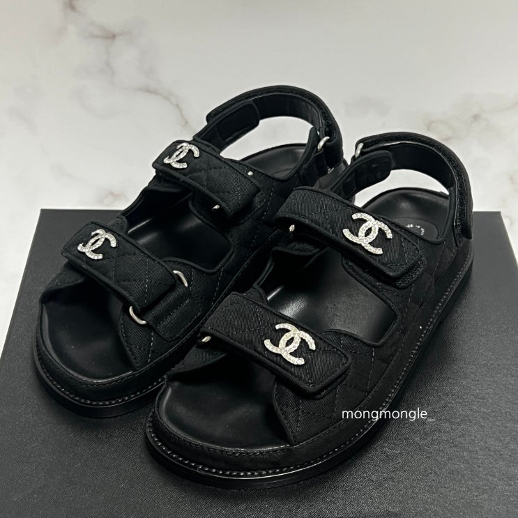 샤넬 패브릭 벨크로 샌들 큐빅로고 믹스드파이어 G31848 리뷰