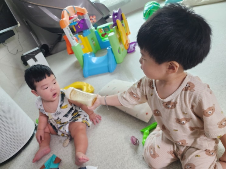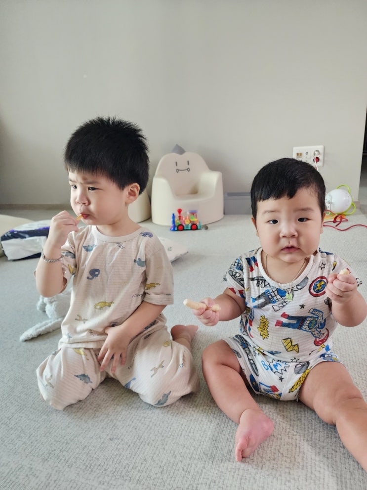 수족구 나은지 일주일만에 또 아팡..ㅎㅎ.. v240810 토요일 낮잠자고 일어났는데, 애들 몸이 쪼끔 따듯하네...