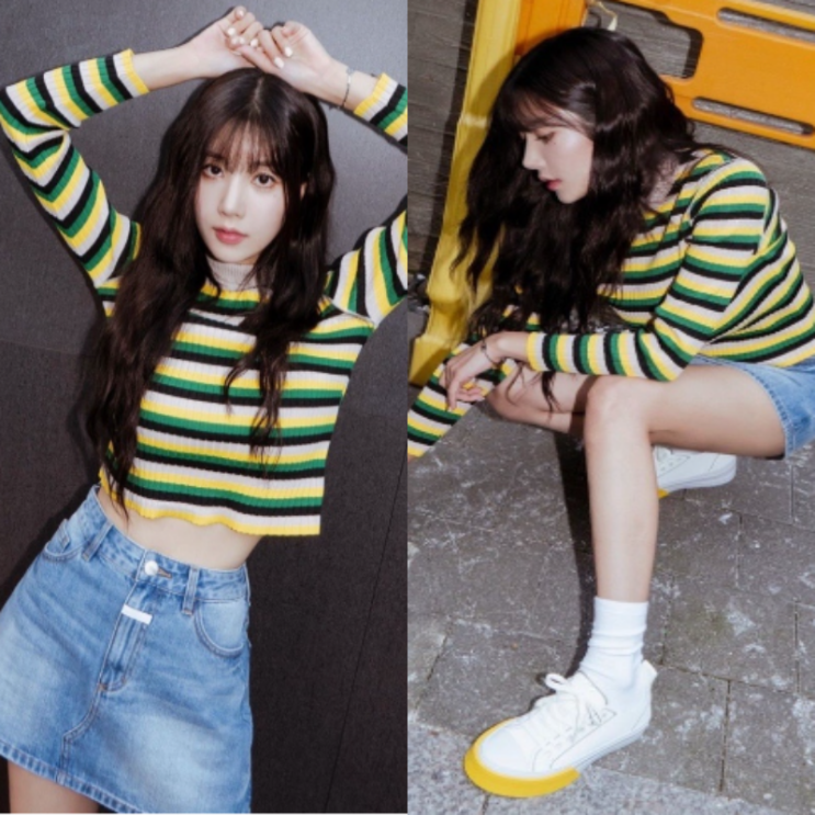 권은비가 착용한 오니츠카타이거 신상 OK BASKETBAL A75 LO 운동화 니트 정보