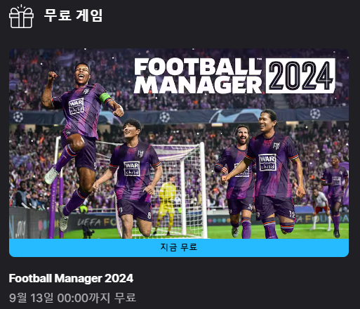 #에픽게임즈 #Football #Manager #2024 #무료 2024. 9. 13. 00:00 할인 종료 종료 전에 어서 어서 받으시...
