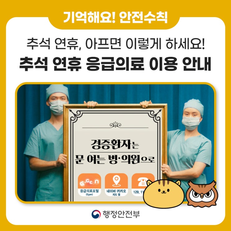 추석 연휴, 갑자기 아프면 이렇게 하세요! 추석 연휴 응급의료 이용 안내