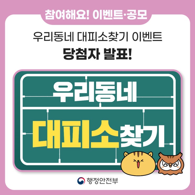 ? 당첨자 발표 [우리동네 대피소찾기 EVENT] ❣ [우리동네 대피소찾기 EVENT]에 참여해주신 ...