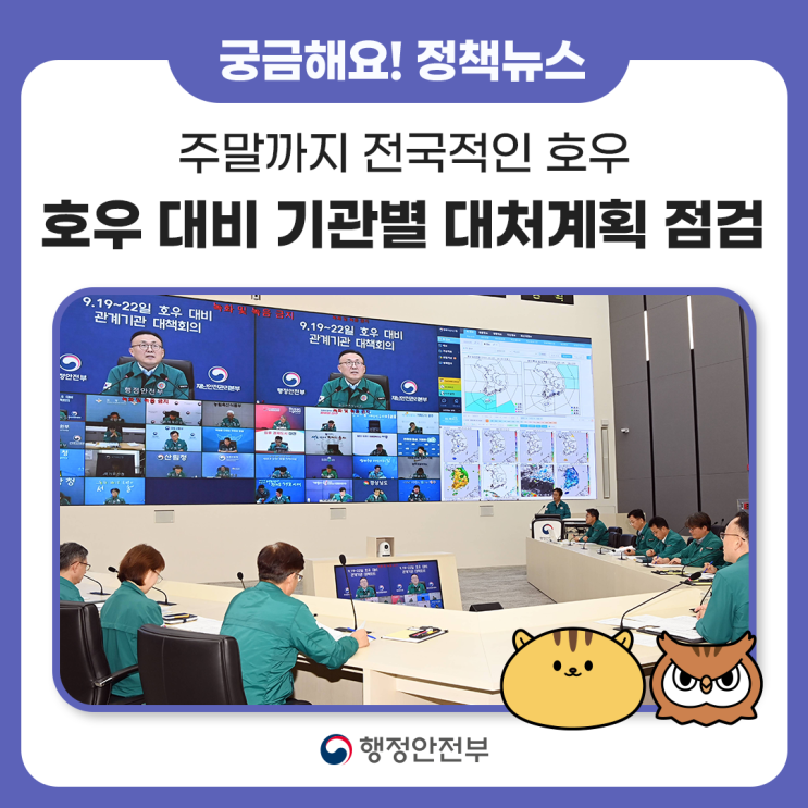 주말까지 전국적인 호우 대처계획 점검 - 19~22일 전국적으로 강하고 많은 비 전망, 호우 대비 기관별 대처...