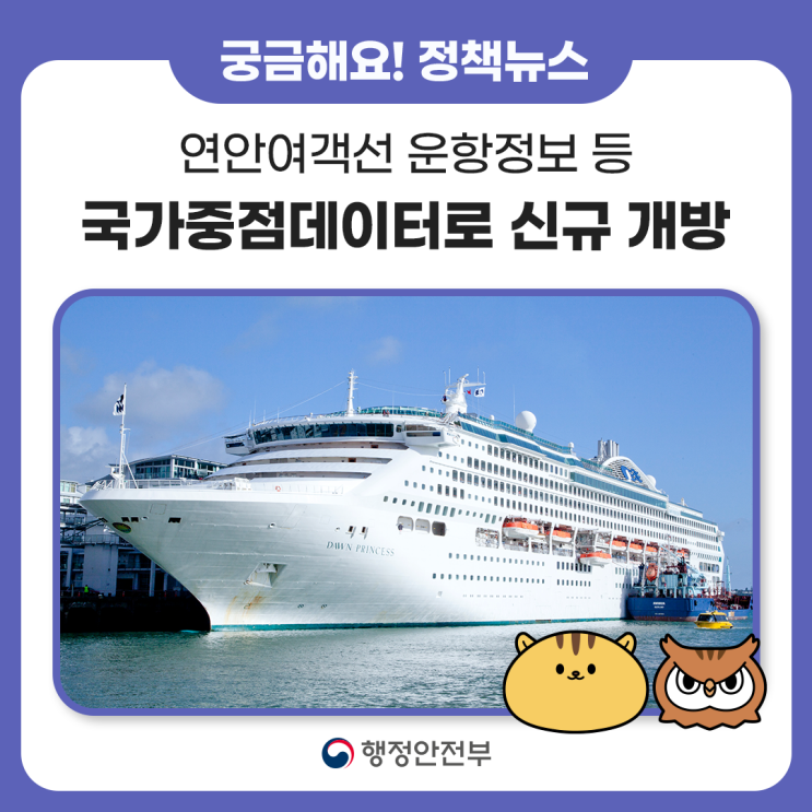연안여객선 운항정보, 프랜차이즈 사업정보 국가중점데이터로 신규 개방합니다.