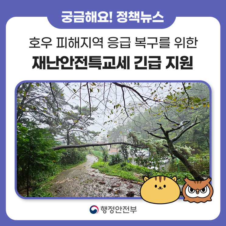 호우 피해지역 응급복구를 위한 긴급 재정 지원 - 호우 피해지역 5개 시·도에 재난안전특교세 24억 원 긴급...