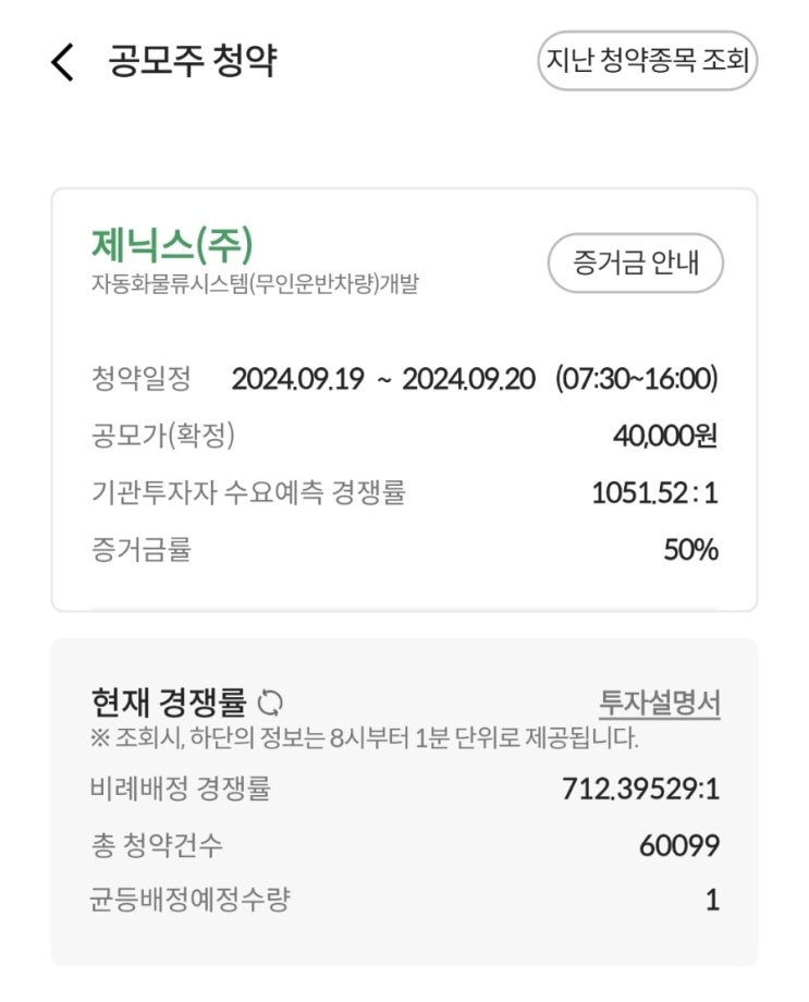 12:11 현재 제닉스 공모주 청약 경쟁률 현황
