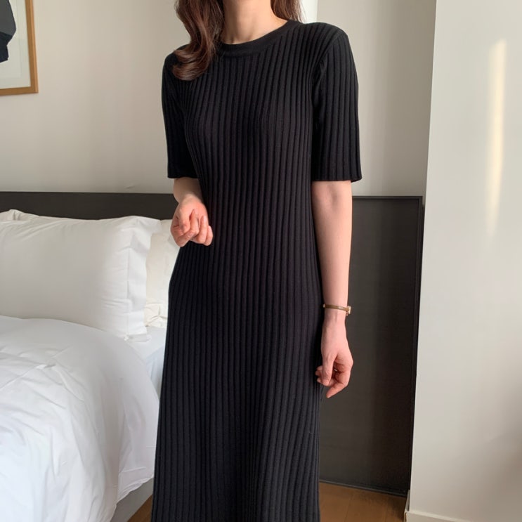 단독오더) 면 반팔 골지 롱 원피스