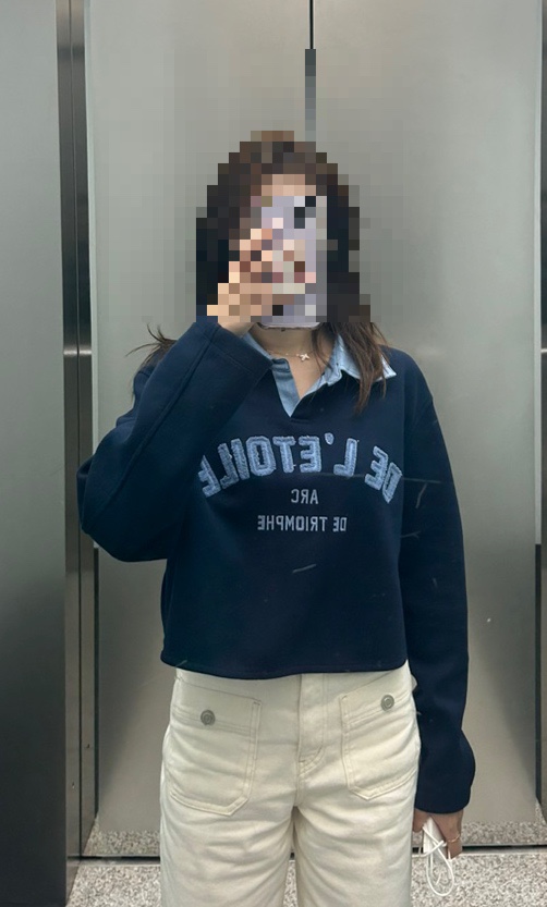 지컷에서 구매한 도톰한 맨투맨! (왜 티셔츠라고 써놨는지 모르겠음 카라 때문인가?) 크롭이라 다리도 짱짱...