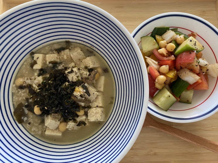 [목표달성D-75일] 당뇨인식단일기 건강한밥상일기 큐브샐러드 두부병아리콩죽 현미올리브유밥