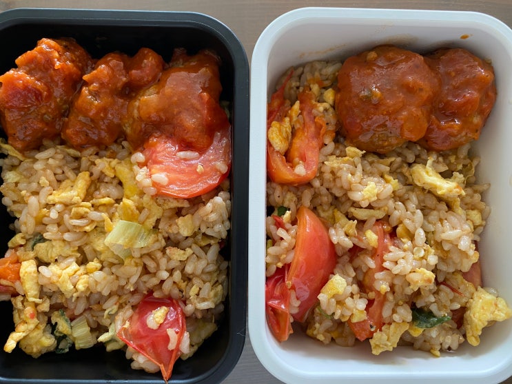 [도시락] 계란토마토볶음밥 미트볼 오이피클 함박스테이크 씨제이간편식 현미올리브유밥