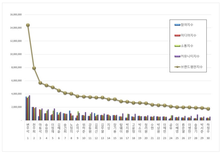 배우 브랜드평판 2024년 6월 빅데이터 분석 결과, 1위 변우석 2위 천우희 3위 마동석 순으로 분석되었다. ...