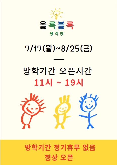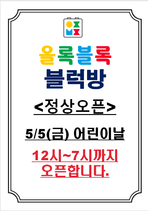 친구들의 방학이 끝나고 개학이 되어 올록블록 블럭방도 빠른 오픈에서 시간변경을 합니ㅣ다. 대신 오고싶...