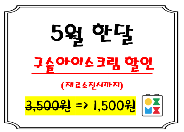 올록블록 입장하는 어린이 친구들에게 5월 한달간 구슬아이스크림을 가격할인하여 드립니다. 점점 뜨거워지...