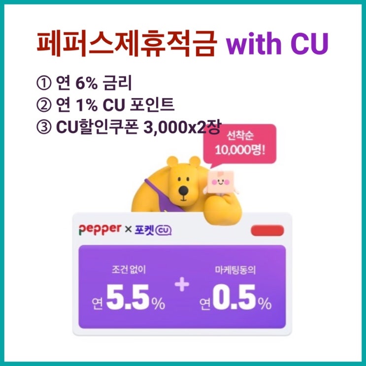 페퍼저축은행 페퍼스 제휴 적금 with CU 연 6% 금리와 CU 혜택