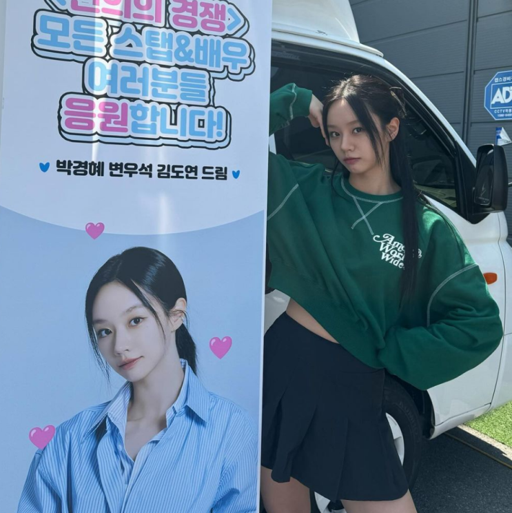 박경혜 변우석 김도연 드림 찐 서프라이즈 감동받은 혜리님의 커피차 인증샷 초록 맨투맨과 플리츠 스커트...