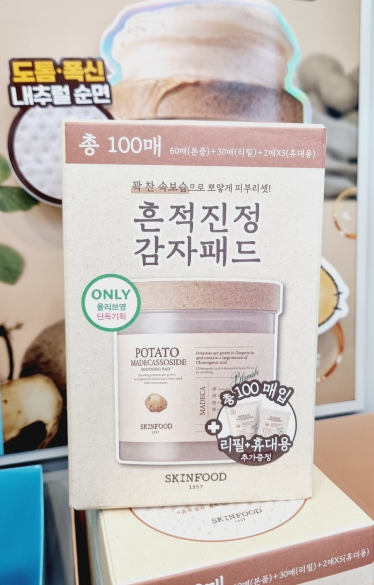 이번 포스팅은 올리브영 팩과 패드 함께 소개 해 드리려고해요. 스킨푸드 감자팩과 감자패드랍니다. 올리브...