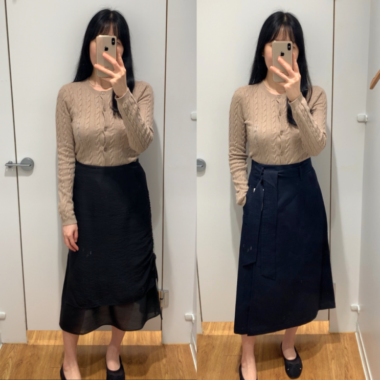유니클로 가을 신상 추천 템 2가지 (케이블크루넥가디건,벨티드플레어스커트)