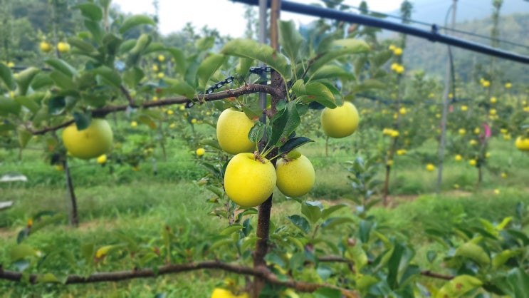 시나노골드 노란사과 황금사과 수확중 안녕하세요 의성 춘산삼남매농원 사과엄마입니다. 본격적으로 시나노...