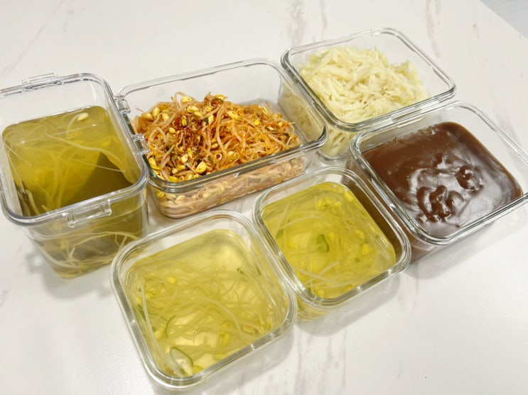 월요일에 사부작 밑반찬만들기. feat. cu쿠폰, 밀크티, 콩나물무침, 콩나물국, 감자채볶음, 도토리묵