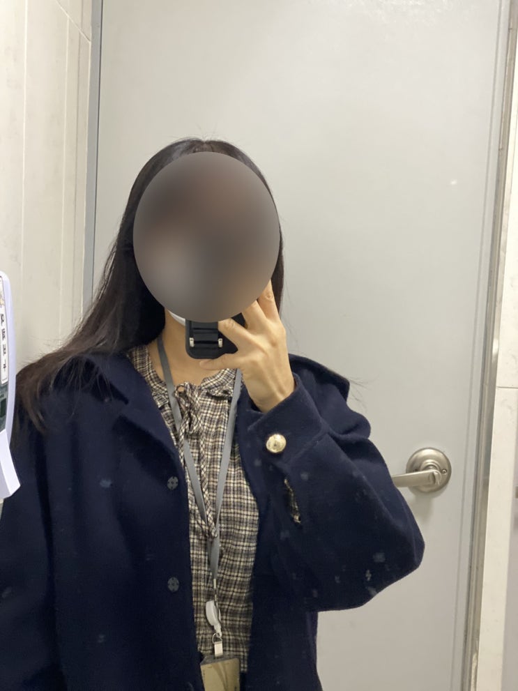 [20230307] 일교차가 큰 3월7일ootd, 3월7일데일리룩, 15도데일리룩/애프터글로우 세일러반코트, SJSJ 울 체크 세일러 블라우스, 올리브데올리브 스커트