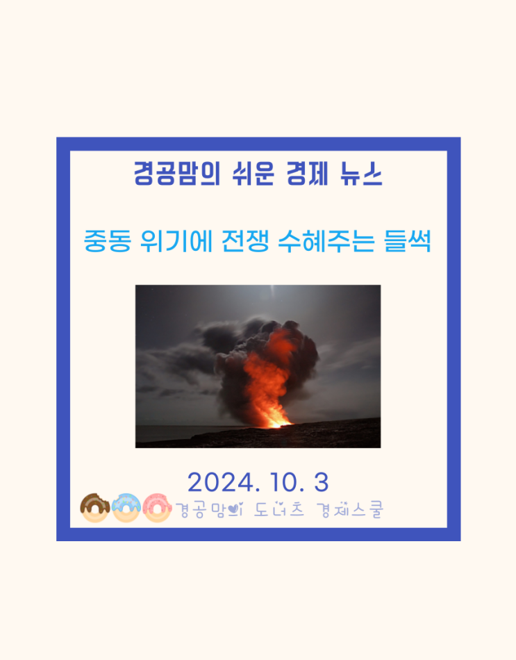 안녕하세요 경제 공부하는 엄마 경공맘이에요 이스라엘과 이란을 중심으로 중동 분쟁이 격화하면서 방산 등...