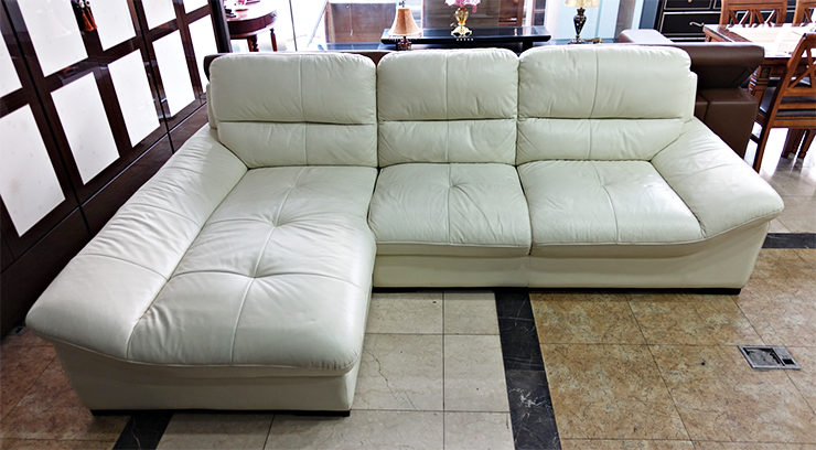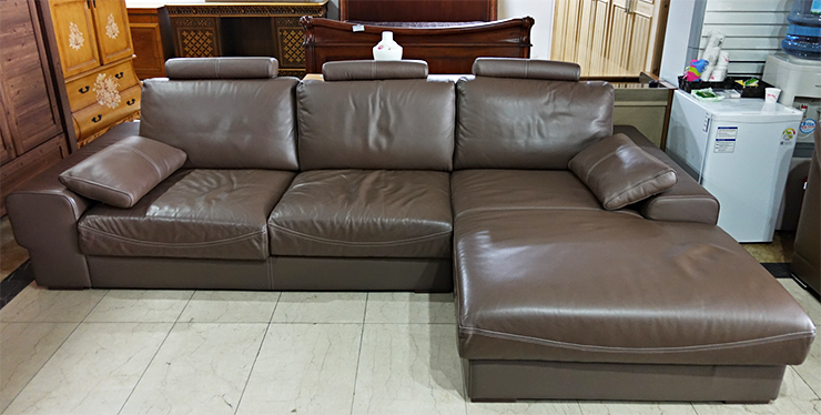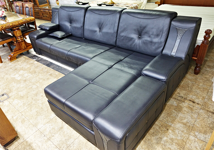 [판매완료- 중고가구 소파] 블랙 모던 천연소가죽 카우치 4인용 쇼파- 수원중고가구 푸른나무。