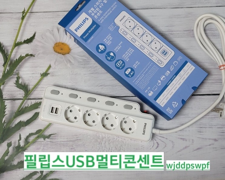 필립스 8구 고용량 멀티탭으로 콘센트 정리 끝