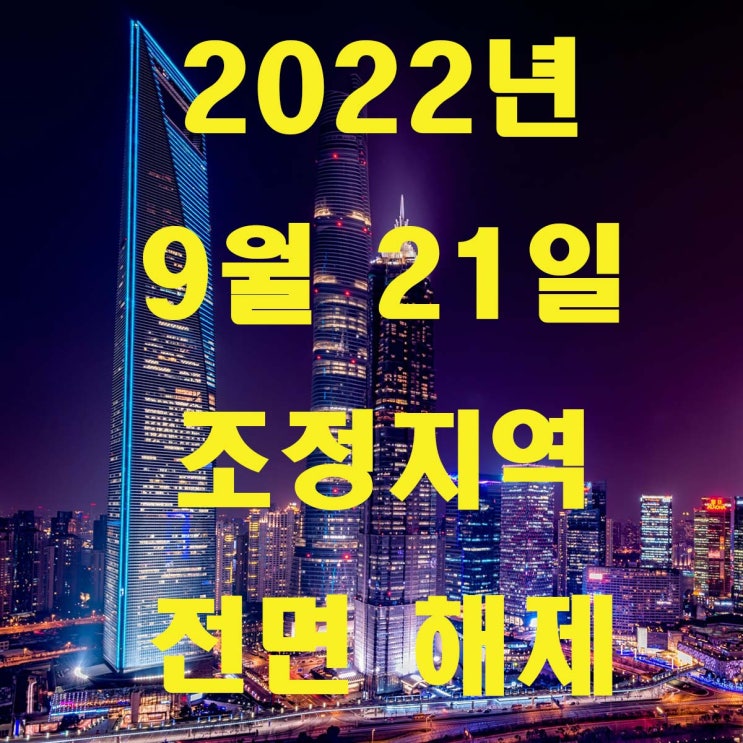 2022년 9월 21일 오늘은 지방 광역시.도의 조정대상지역이 전면 해제 되어 알려 드리고자 합니다. 정부 발...
